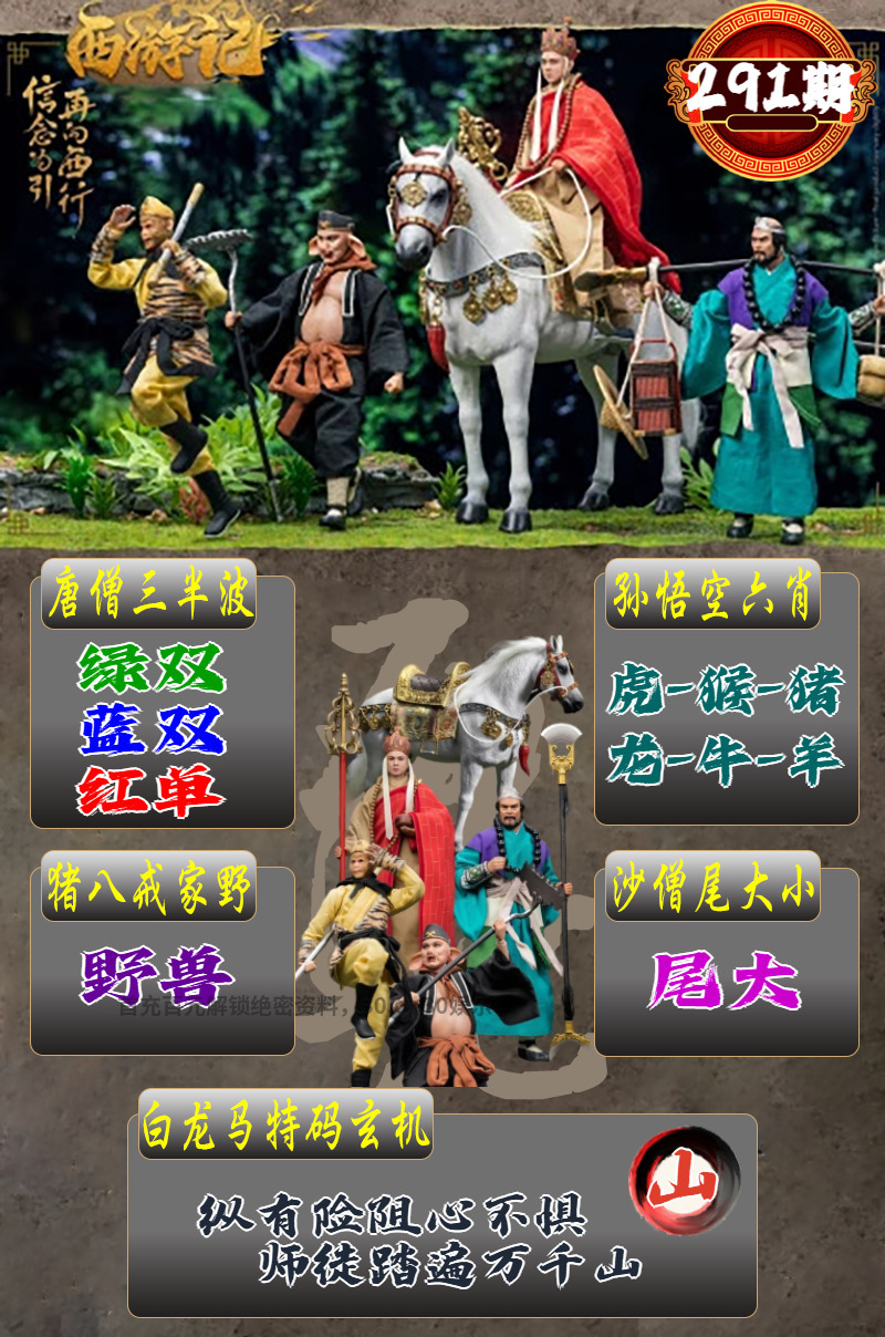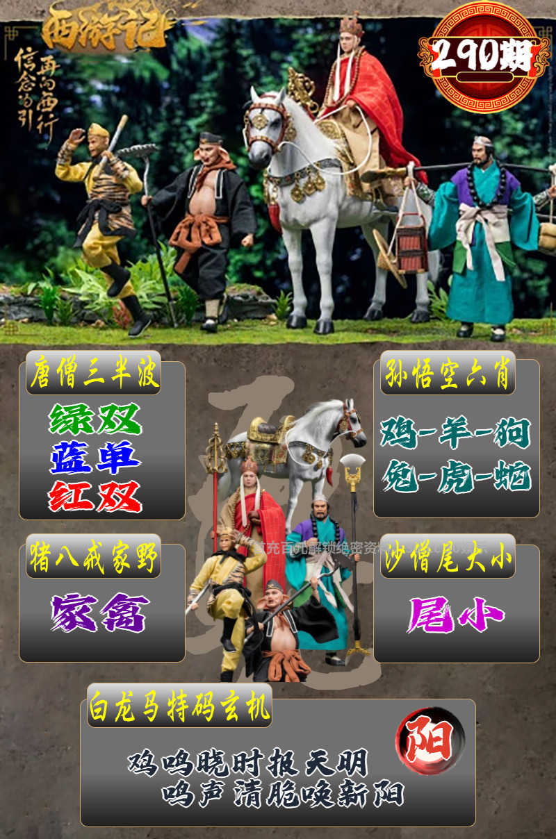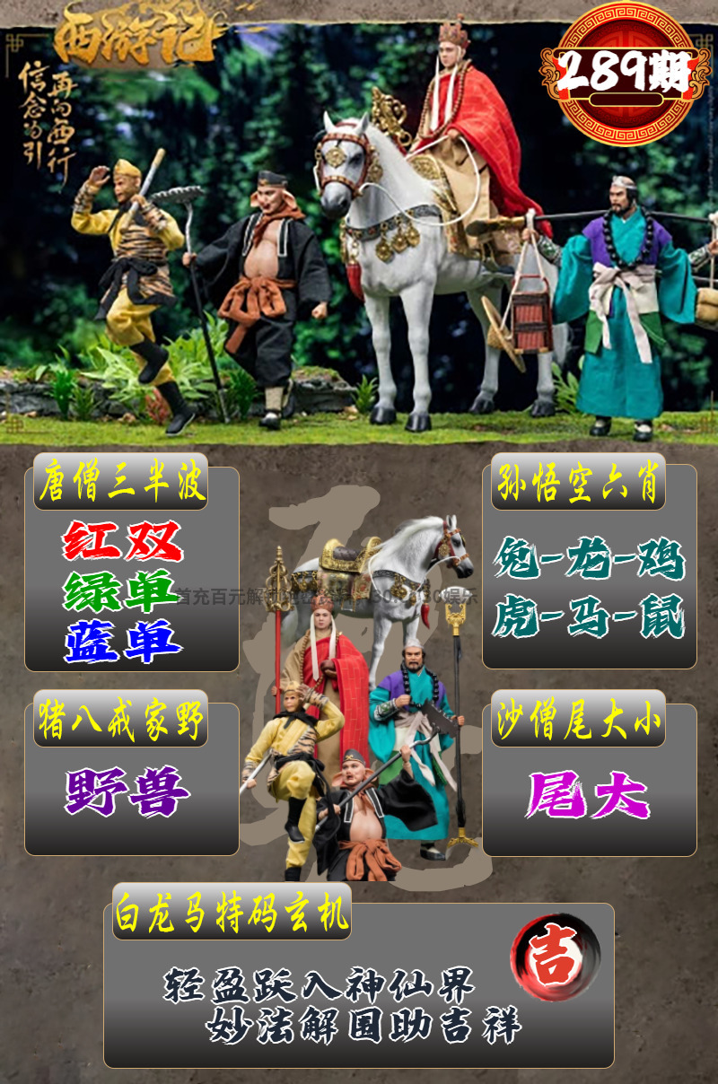 292期:解西游记转寄【道】 白龙马玄机:夜深四野风吹响,狗守家园守正道。 孙悟空六肖:狗马鸡鼠猪兔 唐僧三半波:绿单+蓝单+红双 猪八戒家野:家禽 沙僧尾大小:尾小 |
